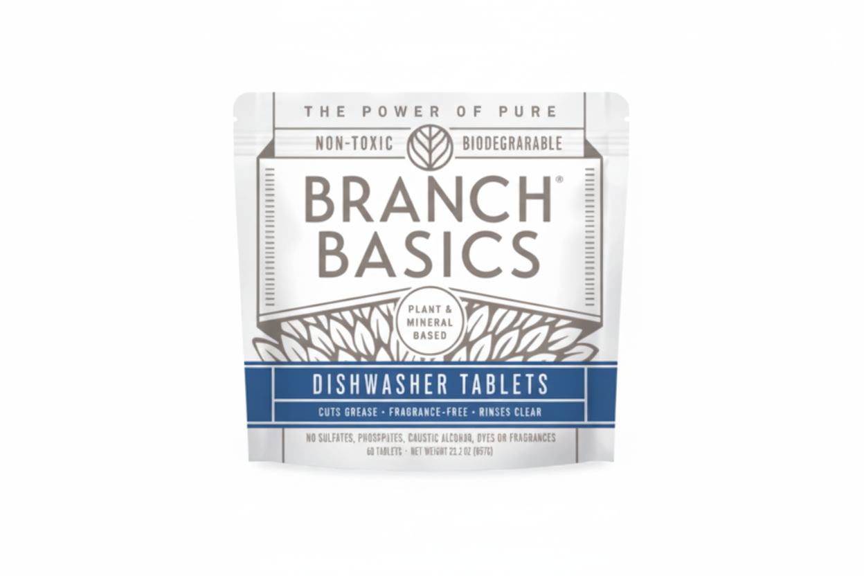 Branch Basics is one of my favorite brands for safe, simple ingredients, so I was excited to see how their dishwasher tablets performed. They’re gentle, clean, and fragrance-free — but “gentle” sometimes means “not quite strong enough.”