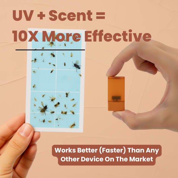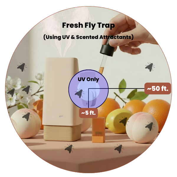 The combination of UV light + fruit scent attracts more flies, faster. Meaning it works better (and faster) than other devices.